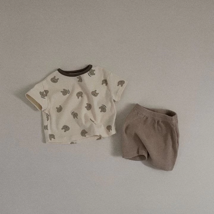 Comfy short sleeved bunny print top and matching waffle shorts set.