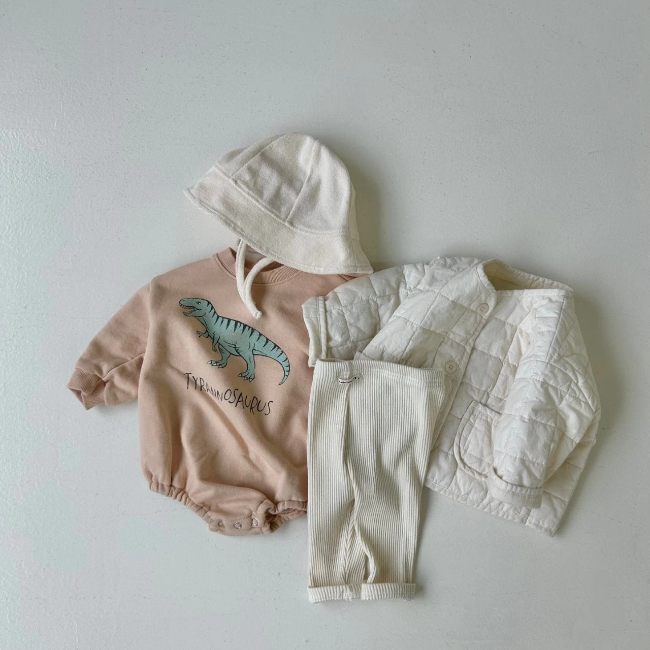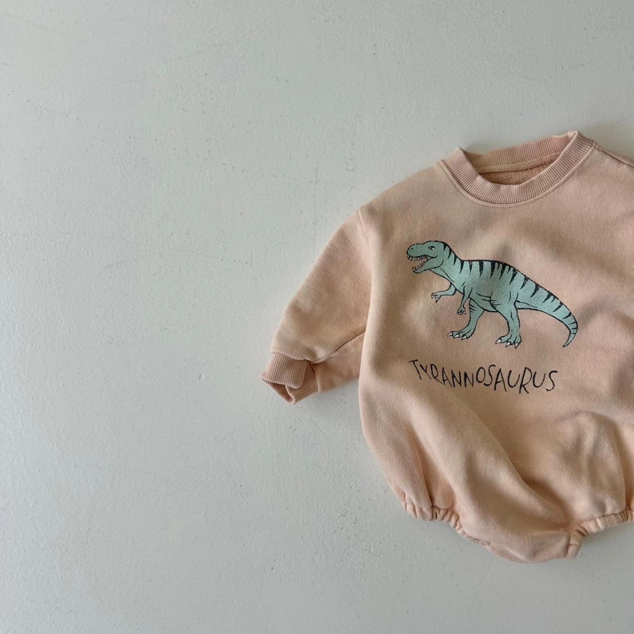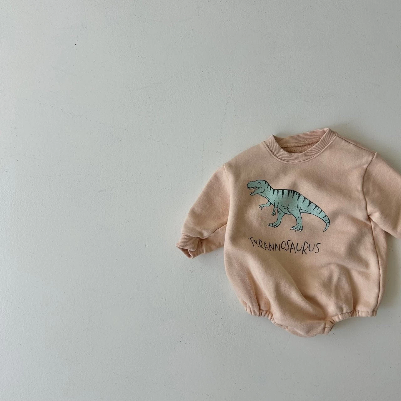 Our best-selling crewneck sweatshirt romper featuring a Dinosaur graphic on the front.