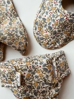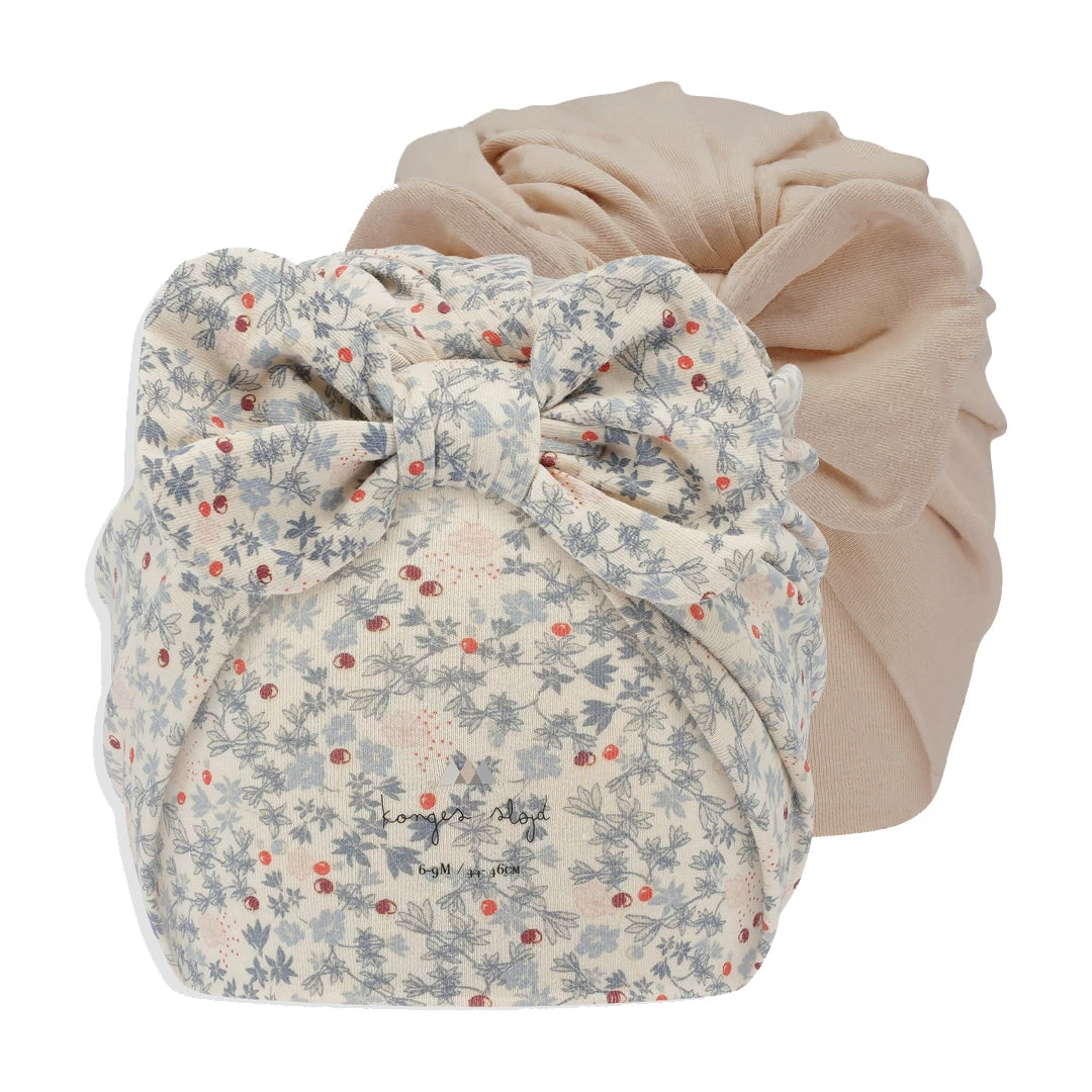 A set of 2 printed soft bonnets featuring an attached bow at the front