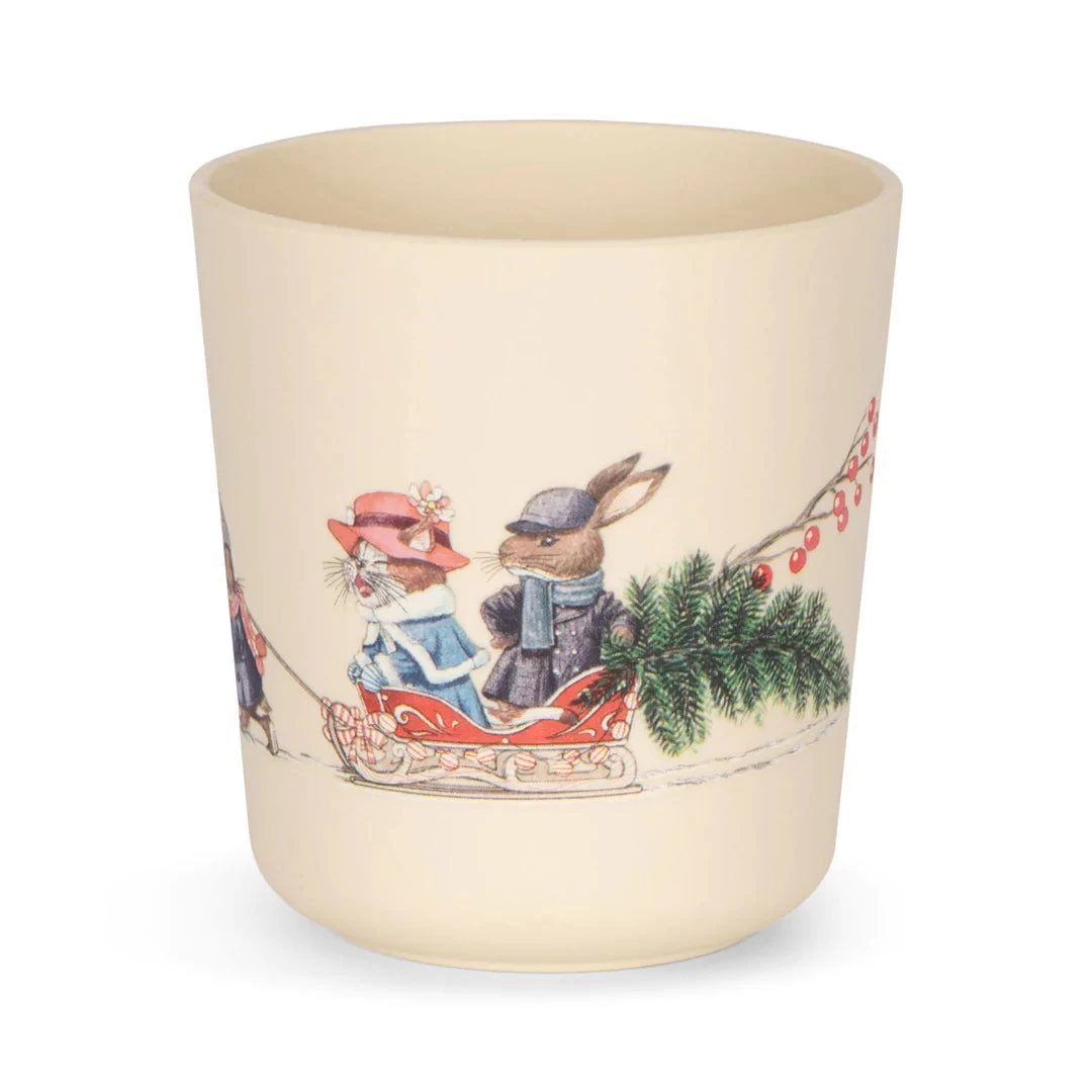 Dinner set made in plastic consisting of two plates/bowls, a cup, a spoon and a fork easy for little hands to grasp.