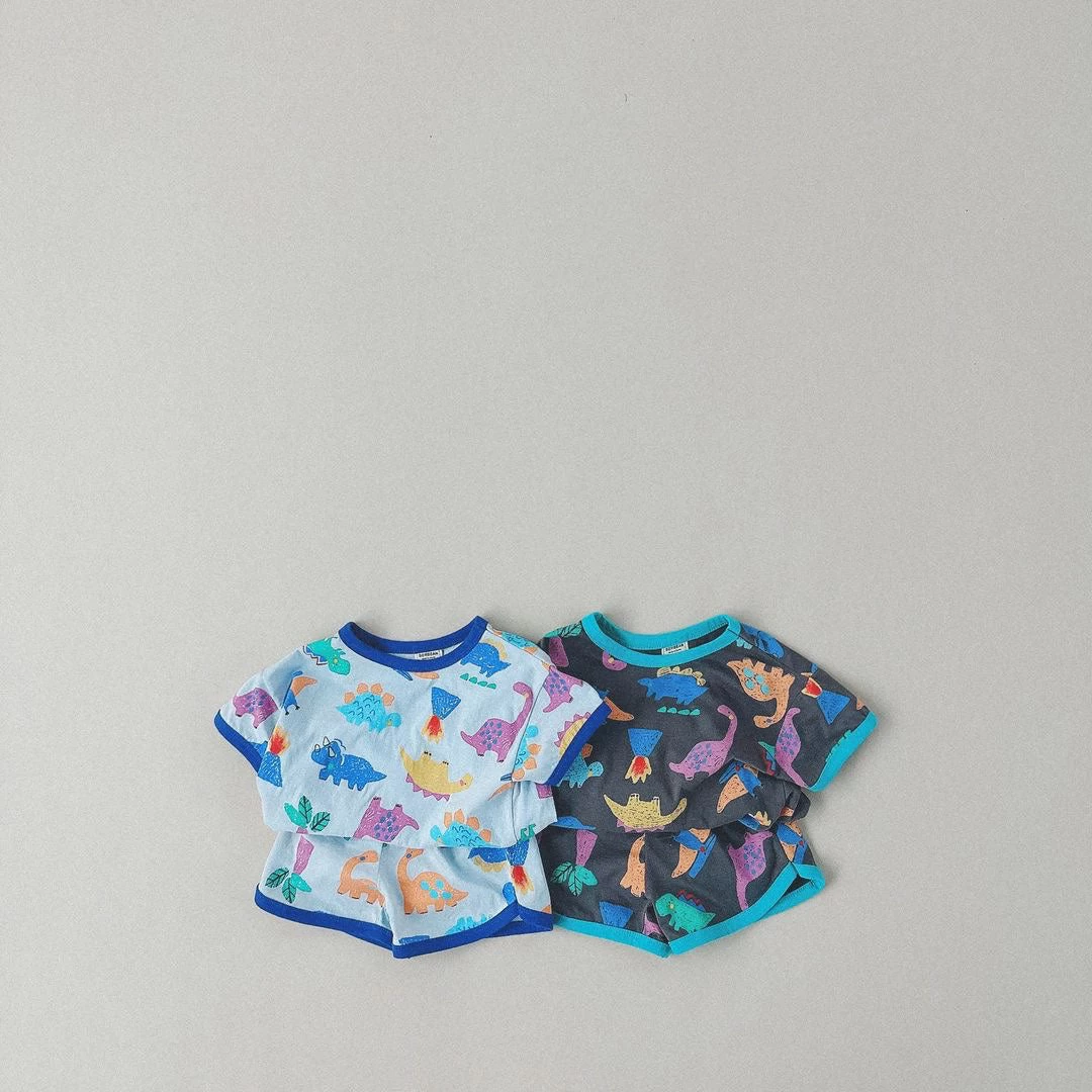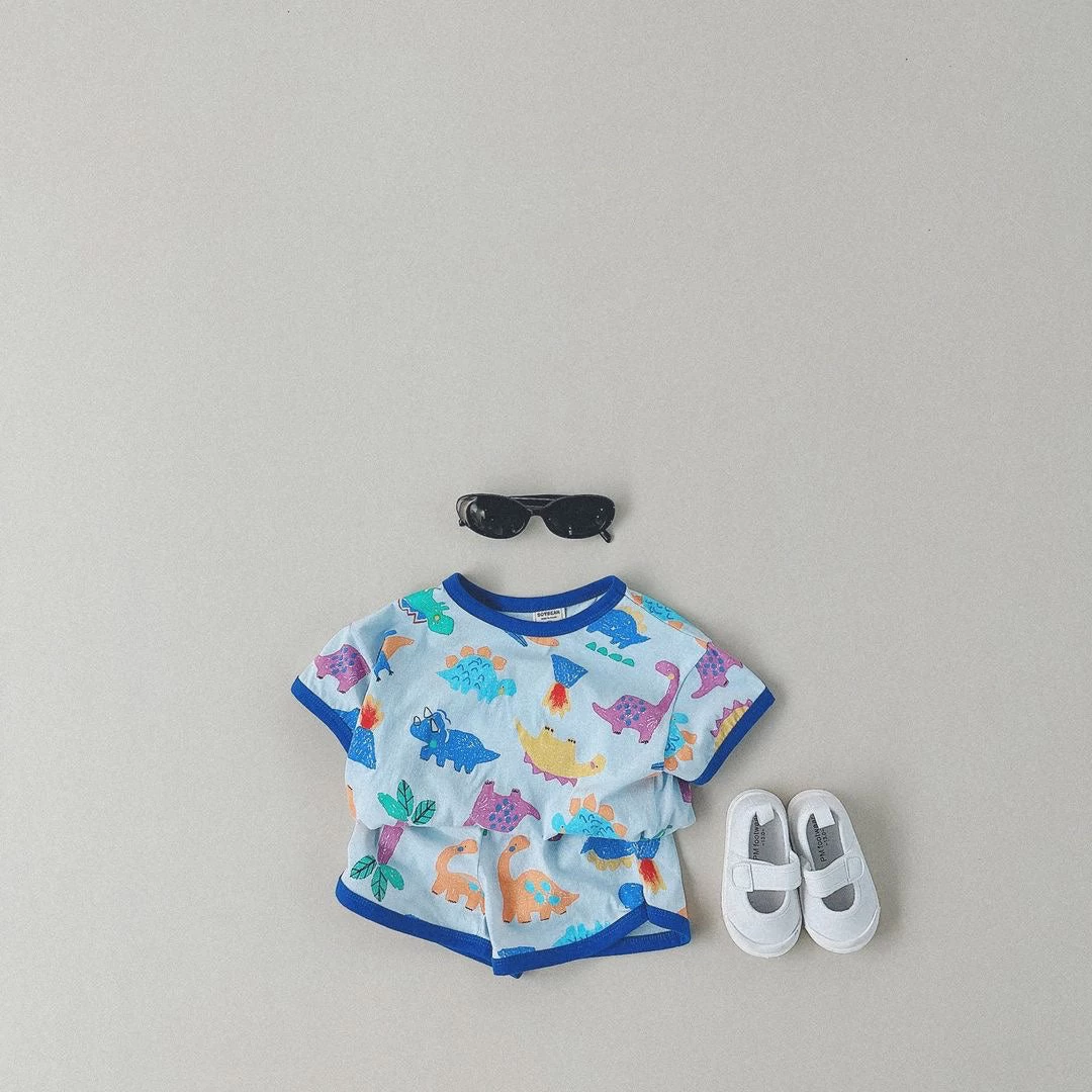 Your little one’s favorite dinosaurs printed on a matching short sleeved tee and shorties set.