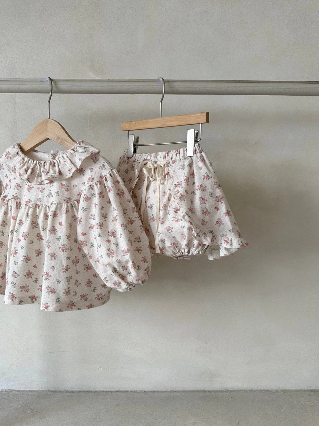 A beautiful bubble sleeve blouse featuring an allover floral print and a ruffle collar.Â