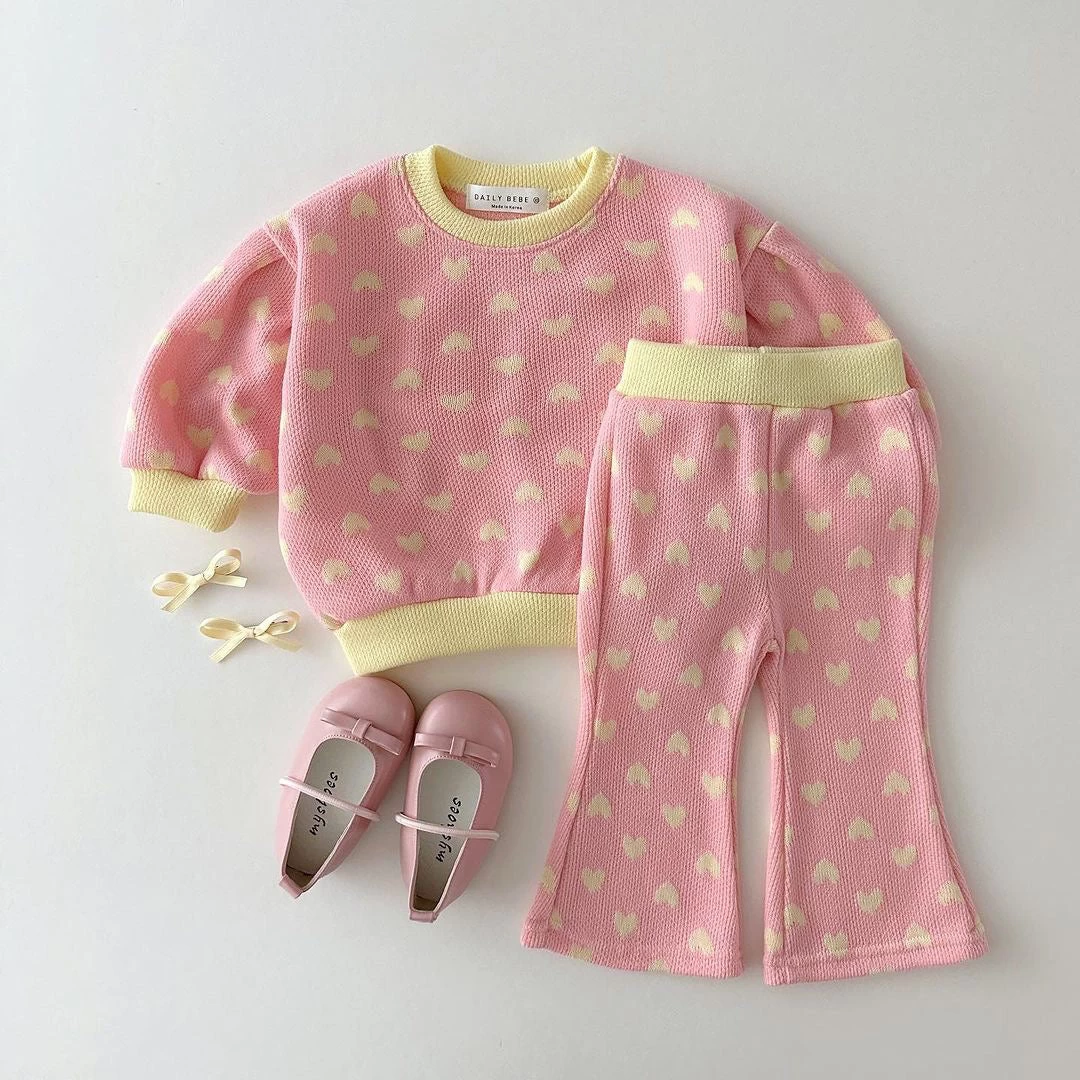 A long sleeved jacquard set featuring matching bootcut pants for the stylish babes.