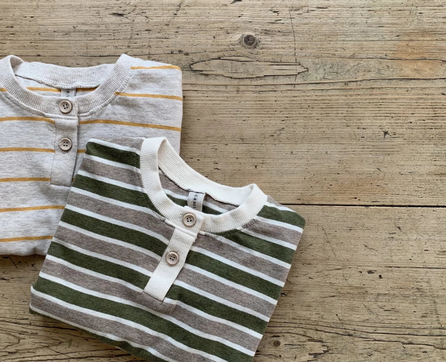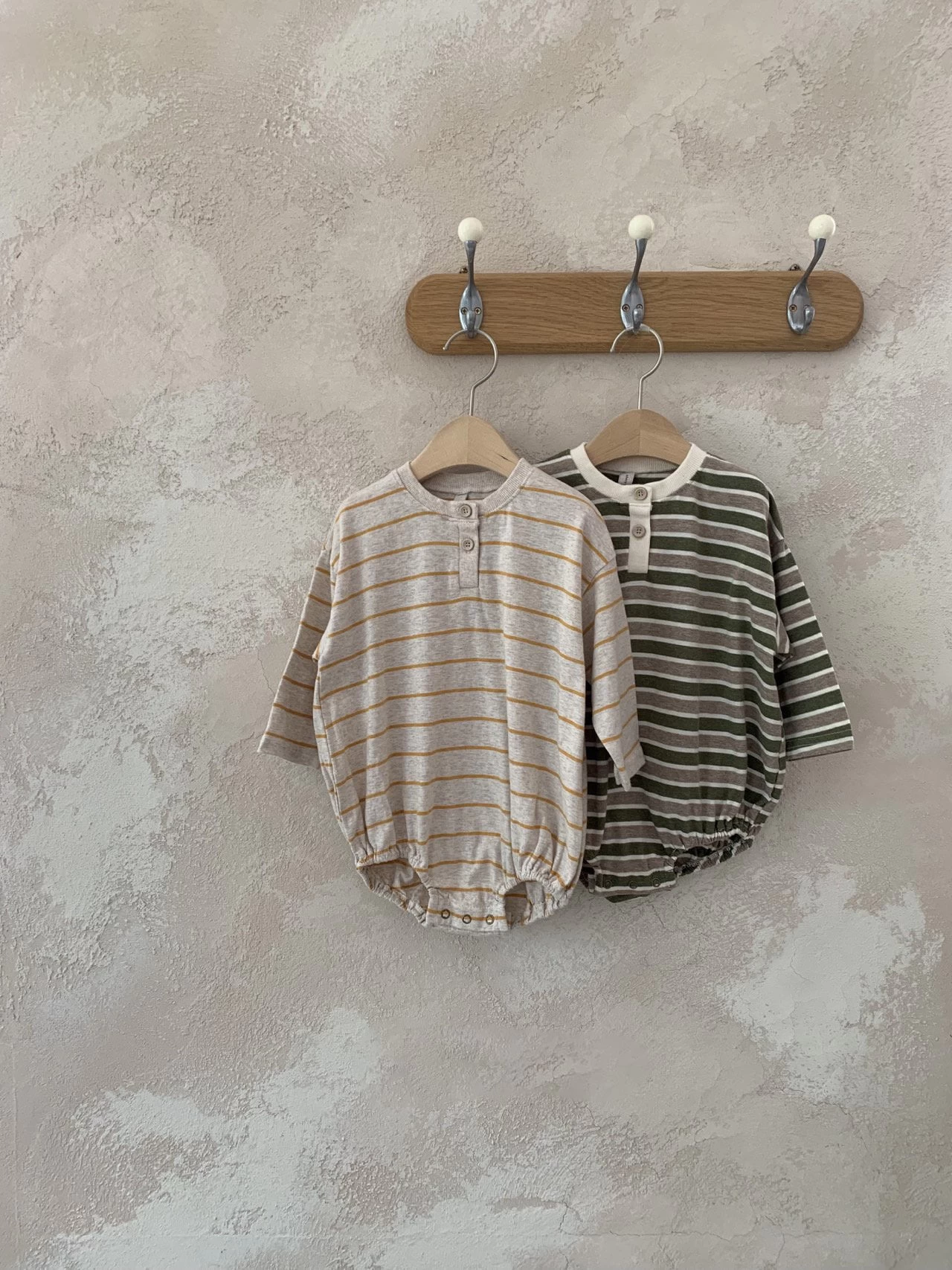 A perfectly oversized henley button up romper in a timeless striped pattern.