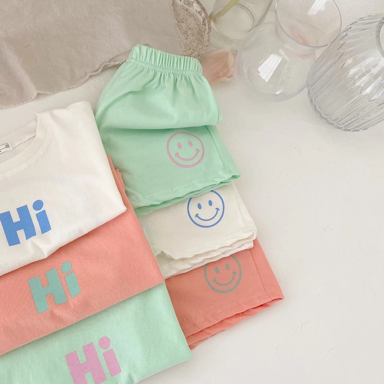 Smiley face matching sets available in a summer version.