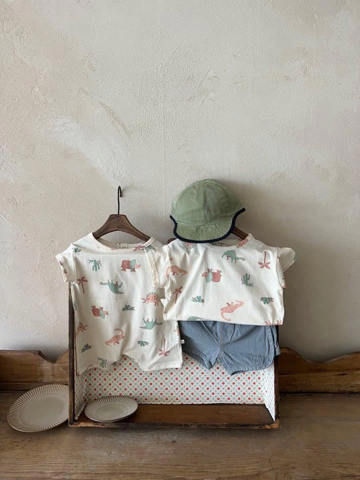 The perfect basic tee for our Dino loving kiddos! This tee features an allover print of your favorite dinosaurs in the most perfect neutral earth tones.