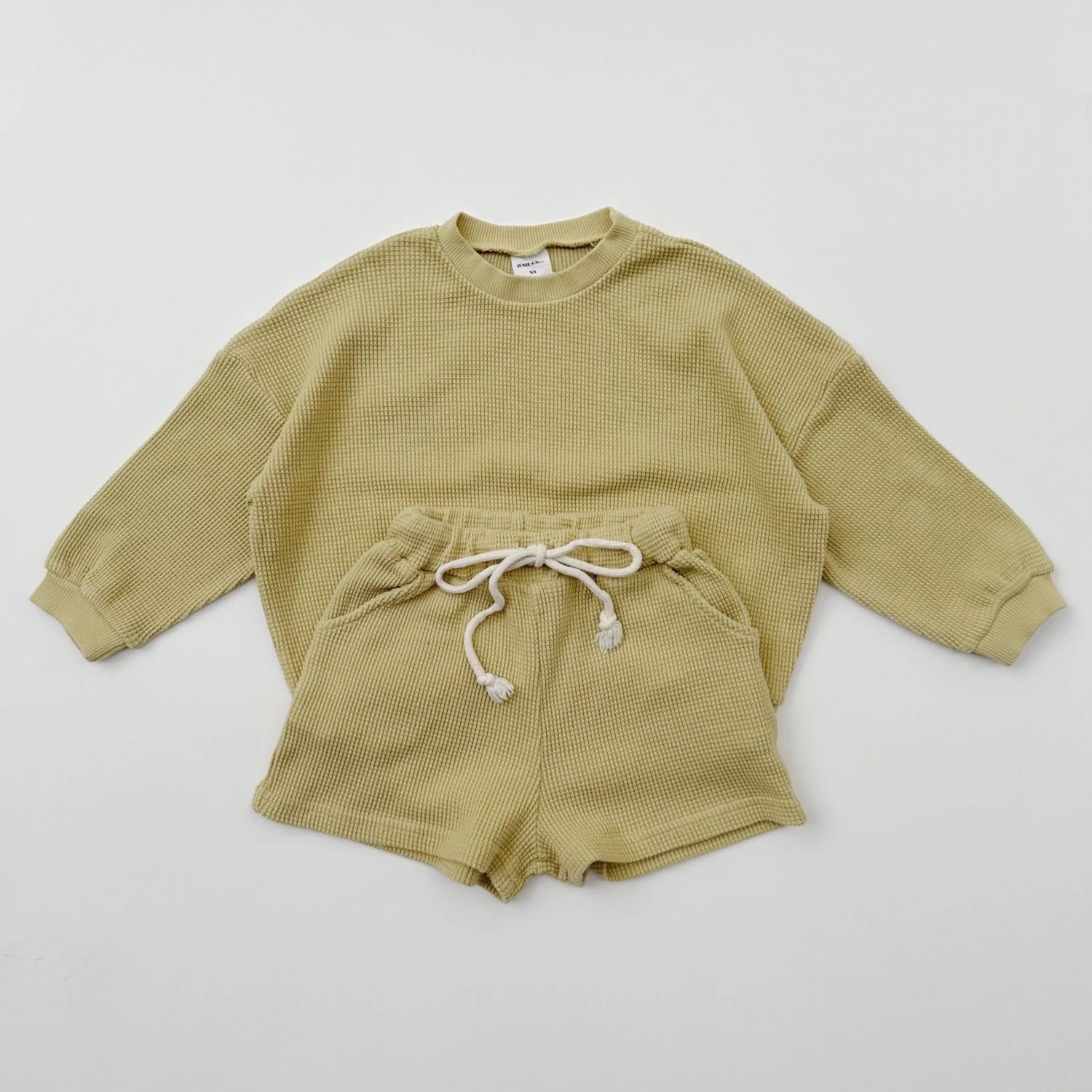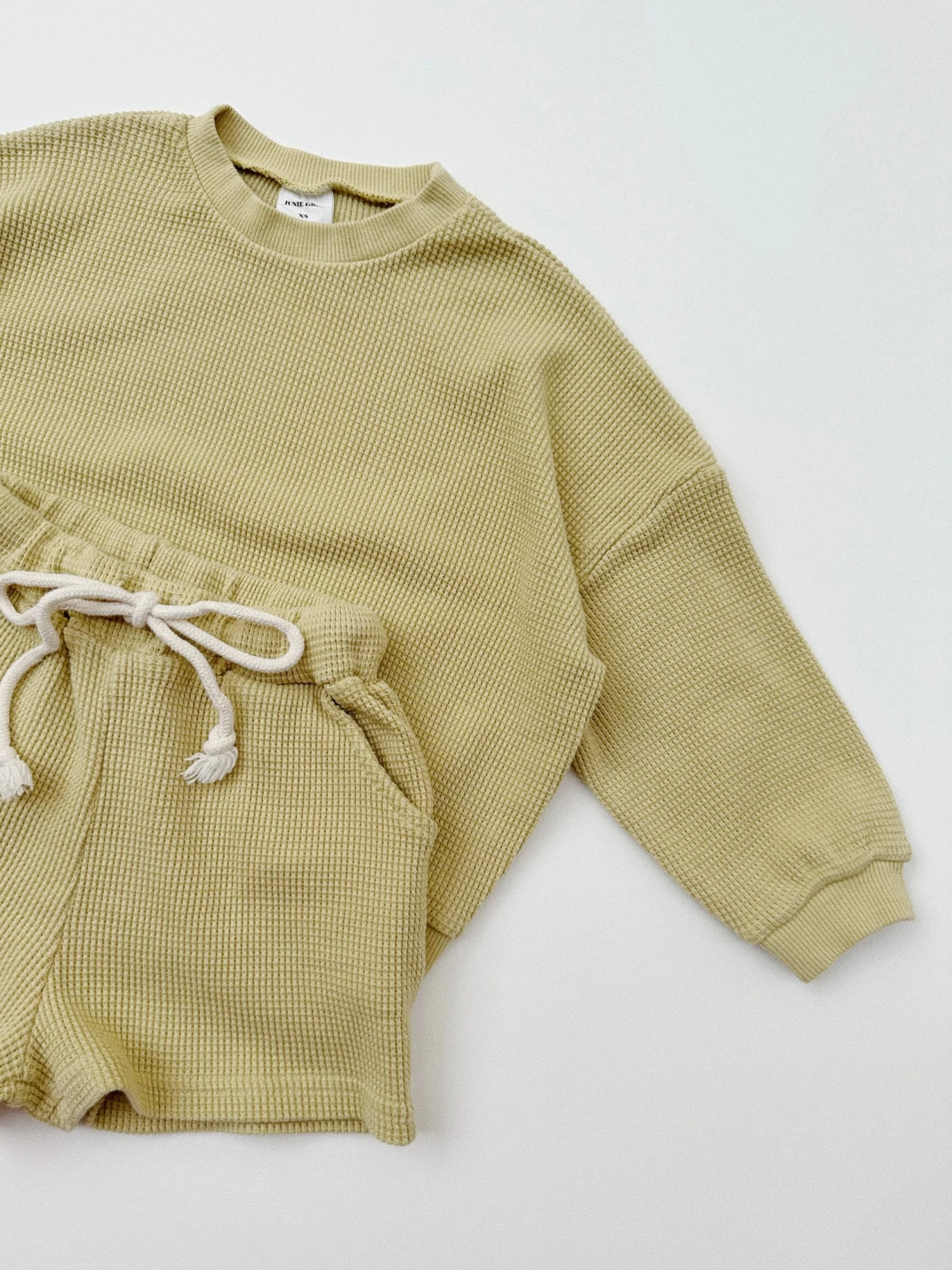 Mommy + Mini luxe waffle sets to live in this season. A perfectly oversized crewneck top featuring matching shorts w/pockets for a stylish cozy outfit.