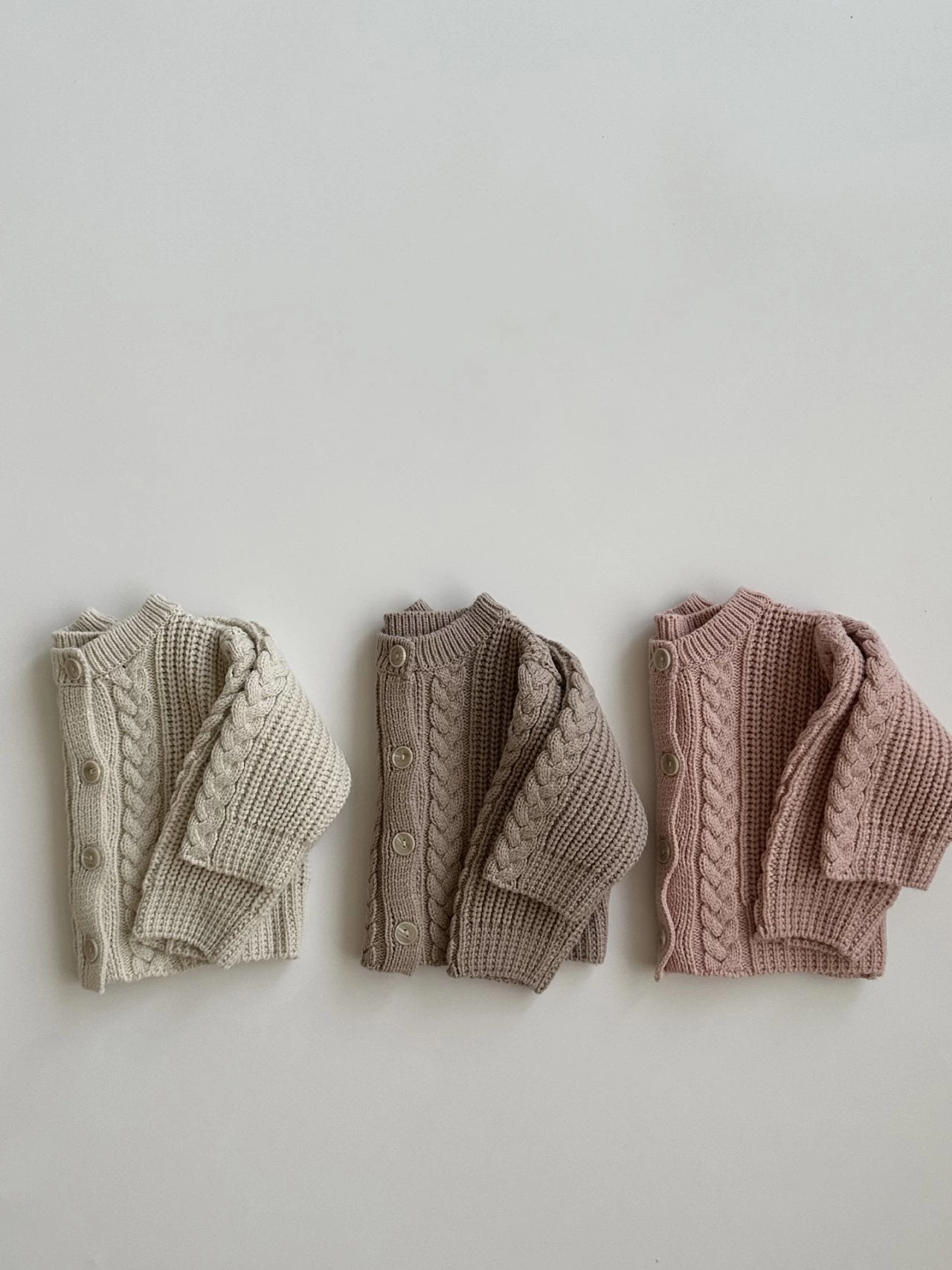 A cozy button up knit cardigan. Matching pants available, sold separately.