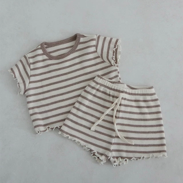 Our favorite waffle fabrication in a timeless short sleeved striped pattern featuring sweet lettuce trim detail. Matching sets make it easy for a stylish, effortless look.