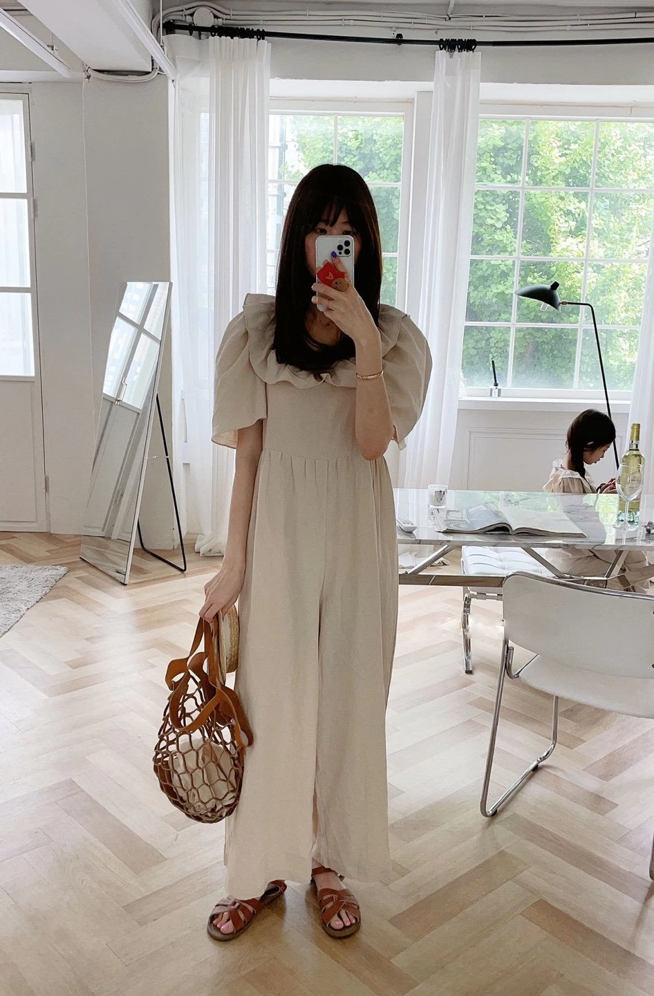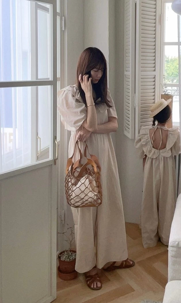 A mommy and me linen jumpsuit featuring ruffle details.