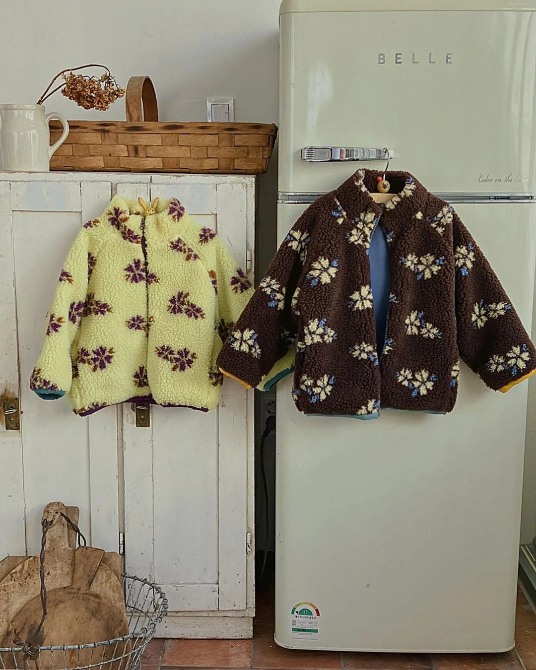 A mama + mini warm sherpa coat with inner fleece lining for extra coziness.
