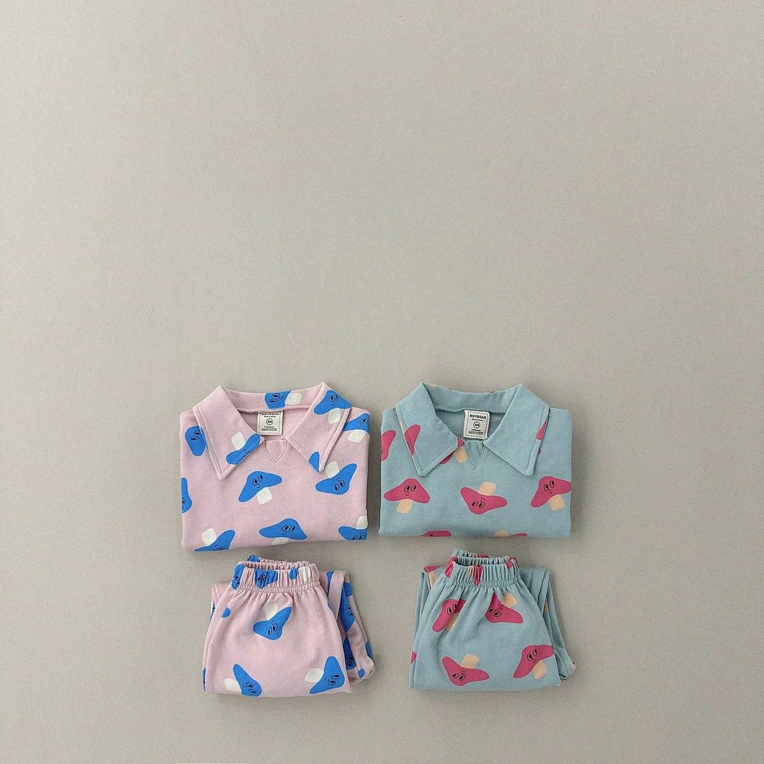 A fun mushroom print matching co-ord sweat set featuring collar details.