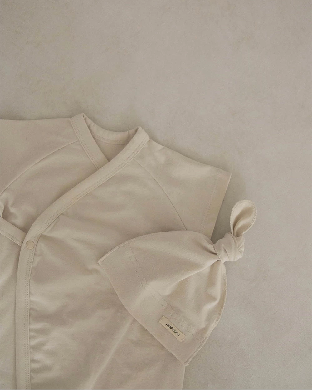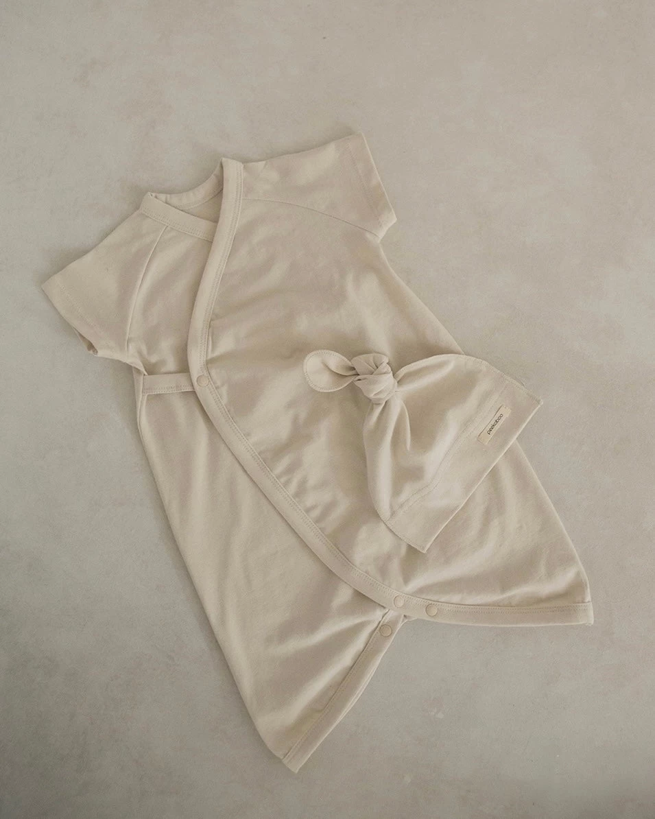 The sweetest kimono newborn onesie featuring a matching hat. The perfect going home outfit.