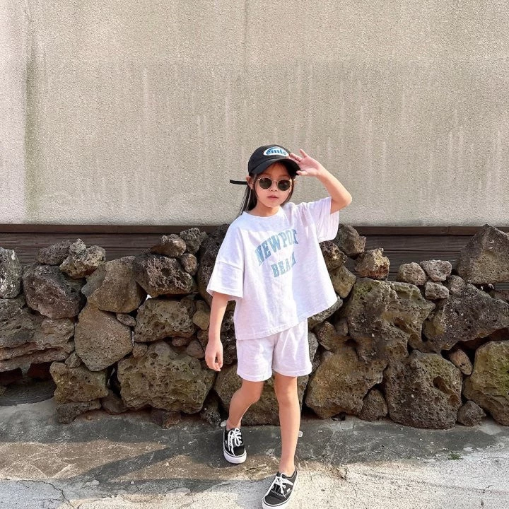 A perfectly oversized tee and matching shorties featuring Newport Beach printed across the front.