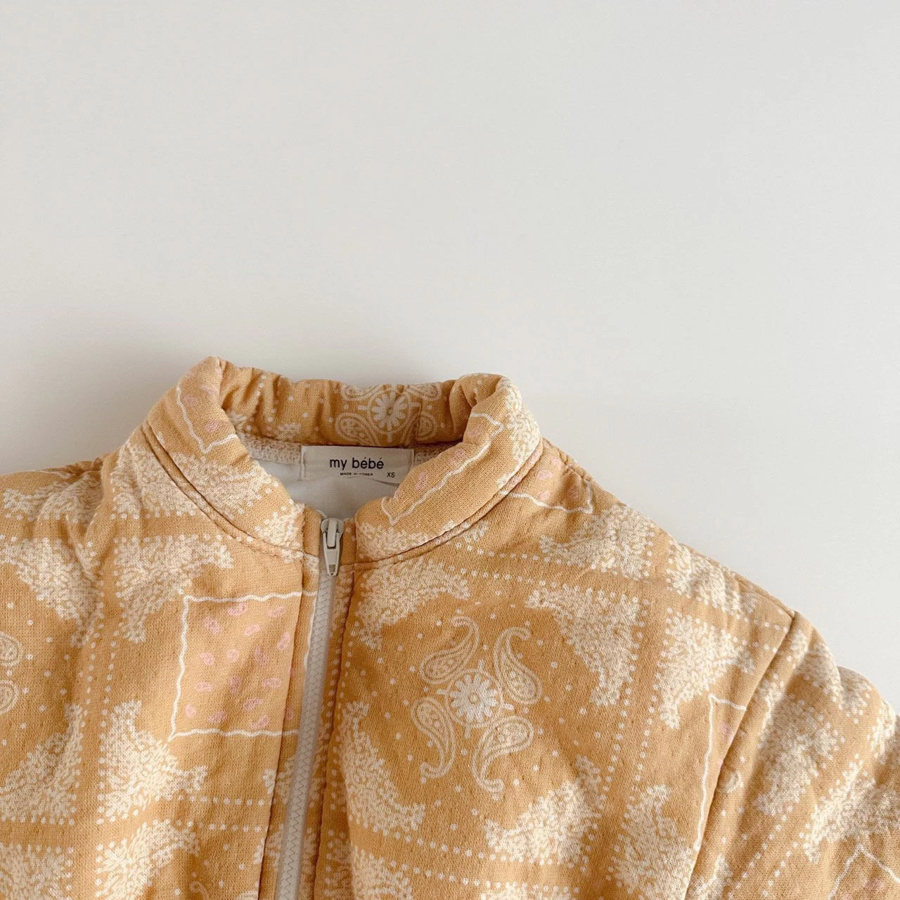 A zip up cotton zip up jumper featuring an all over paisley print.