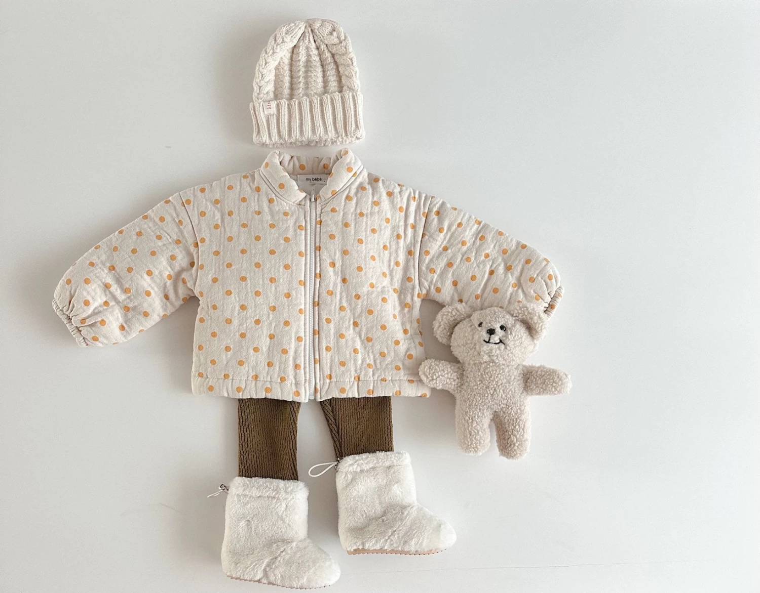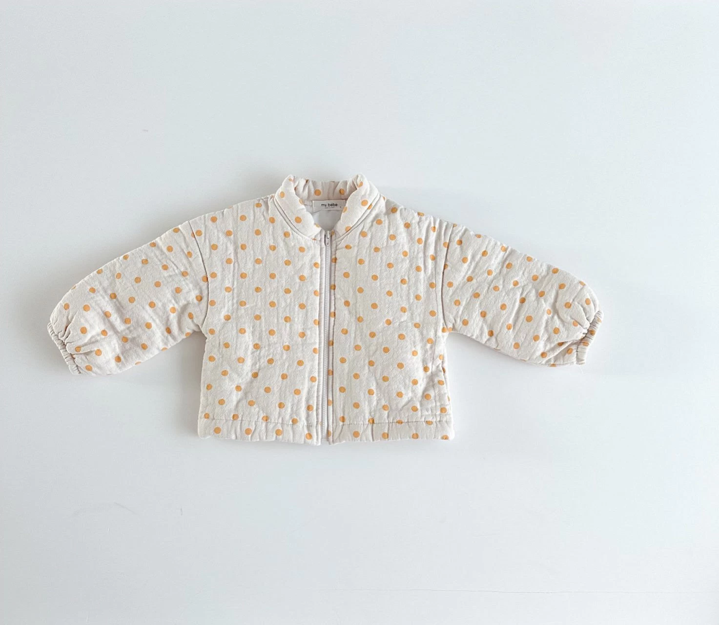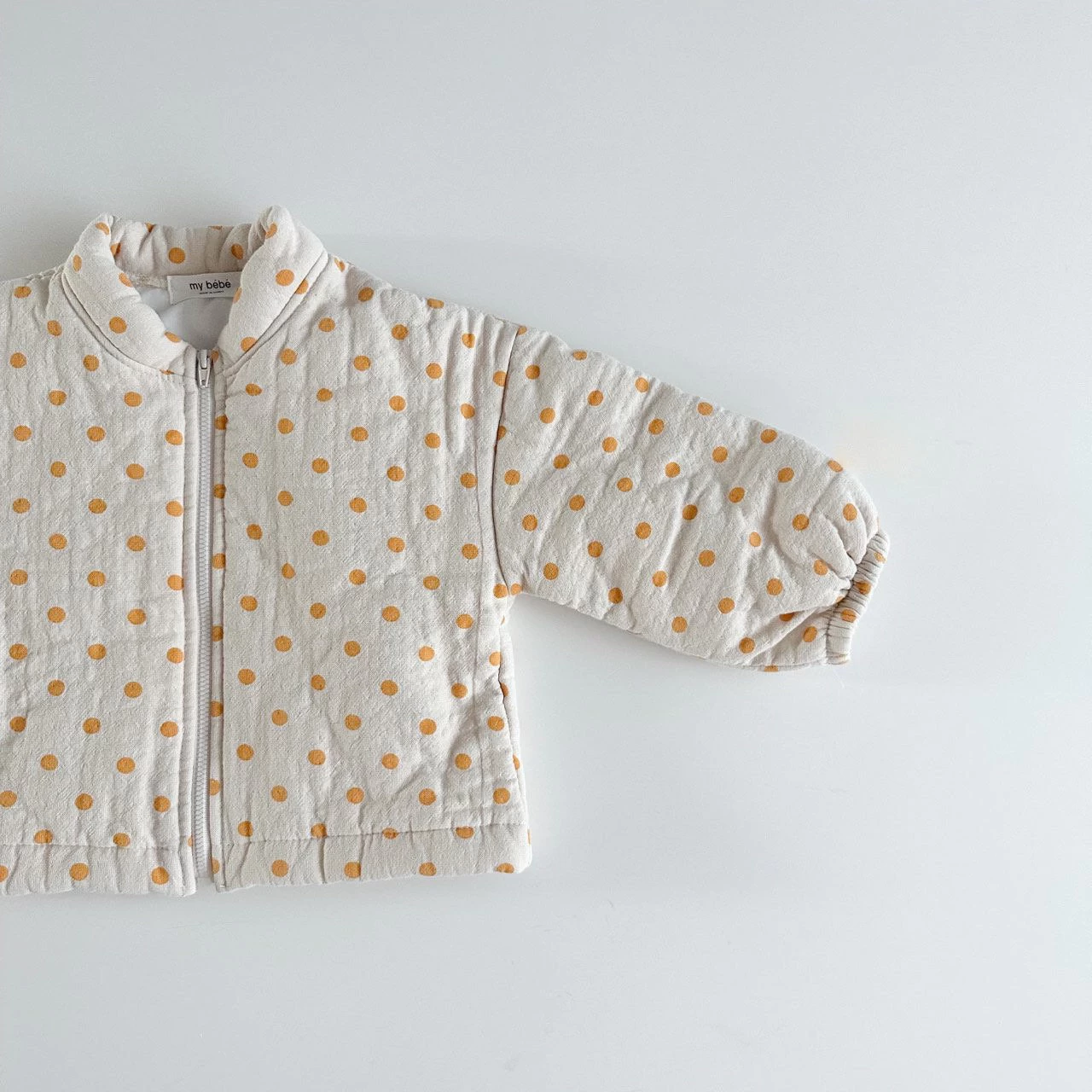 A zip up cotton zip up jumper featuring an all over polka dot print.