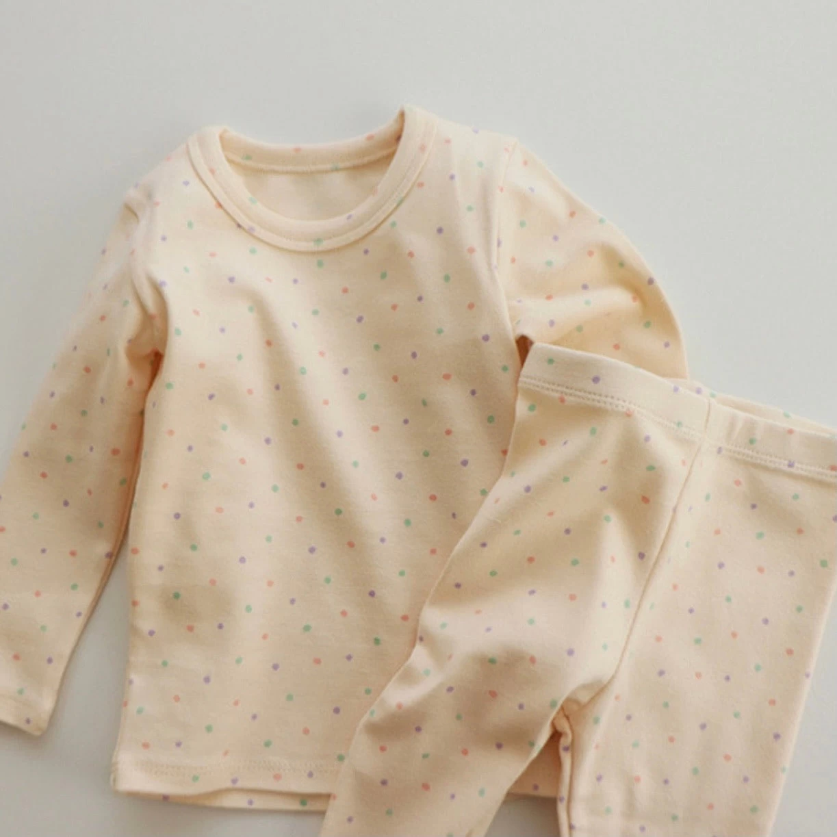 A buttery soft pastel polka dot pyjamas for your little one to lounge in comfort.