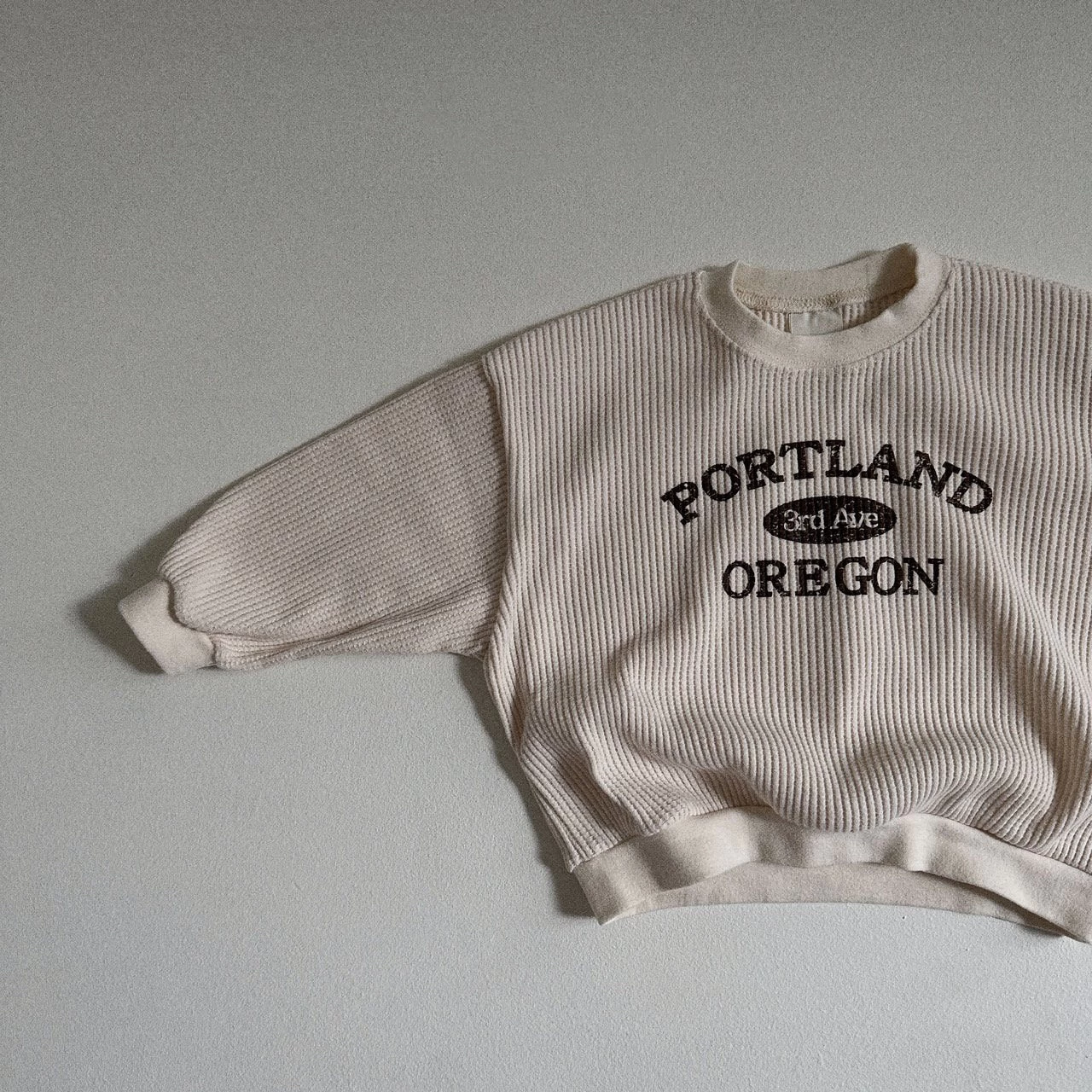 A perfectly oversized waffle crewneck featuring a PDX graphic across the front.