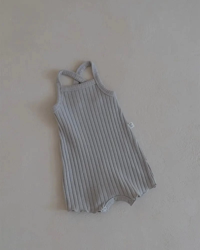 A classic sleeveless romper made from a comfortable rib fabric.Â