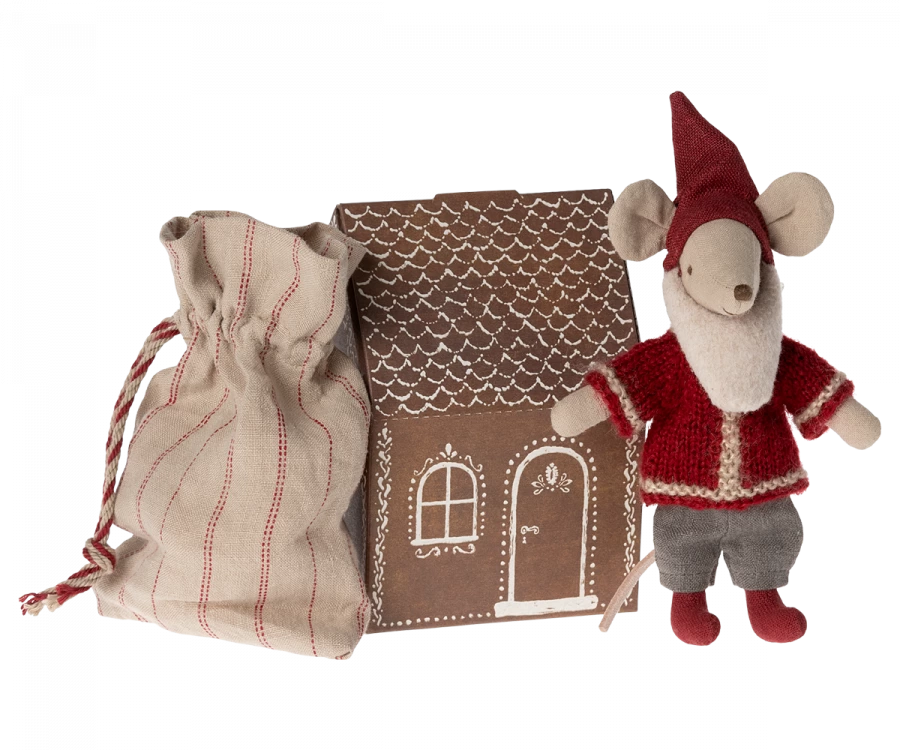 Big brother mouse dressed in classic santa clothes. He lives in a small house, and has a sack for all the presents he has to deliver on Christmas night. He fits perfectly into the Mouse Gingerbread House as he can slide through the chimney.
