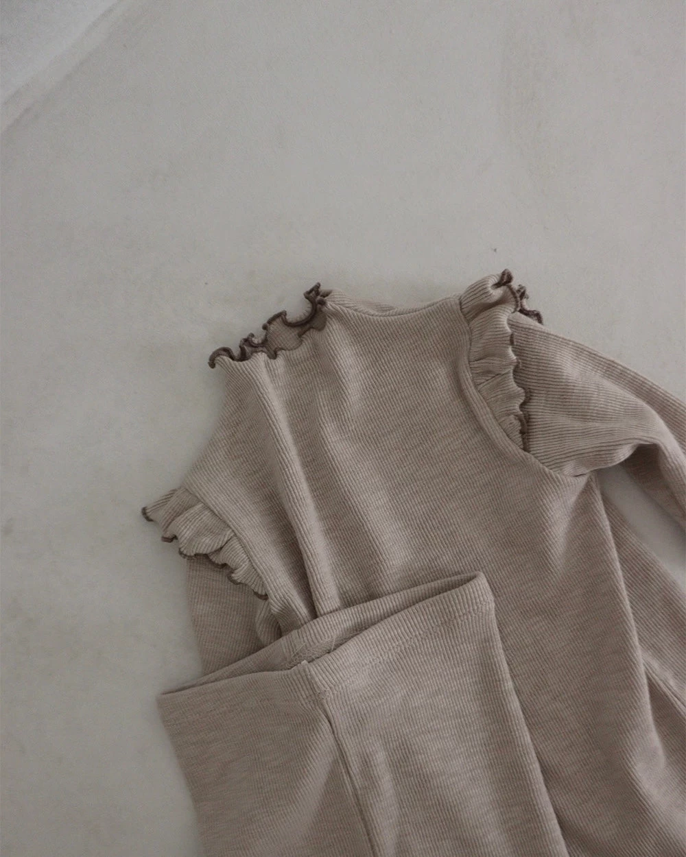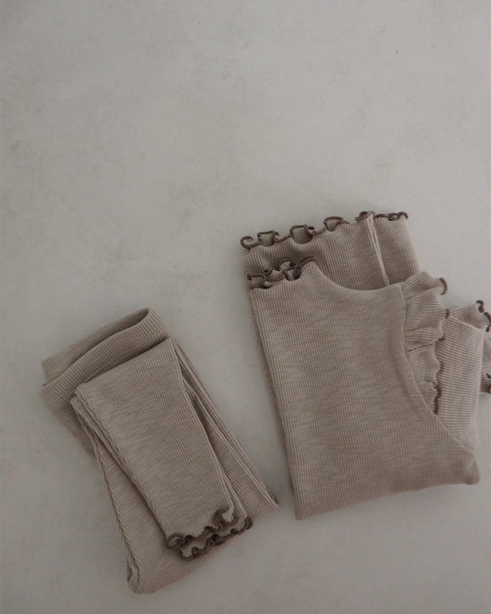 Buttery soft pyjamas featuring ruffle details on the shoulder and lettuce trim edges.