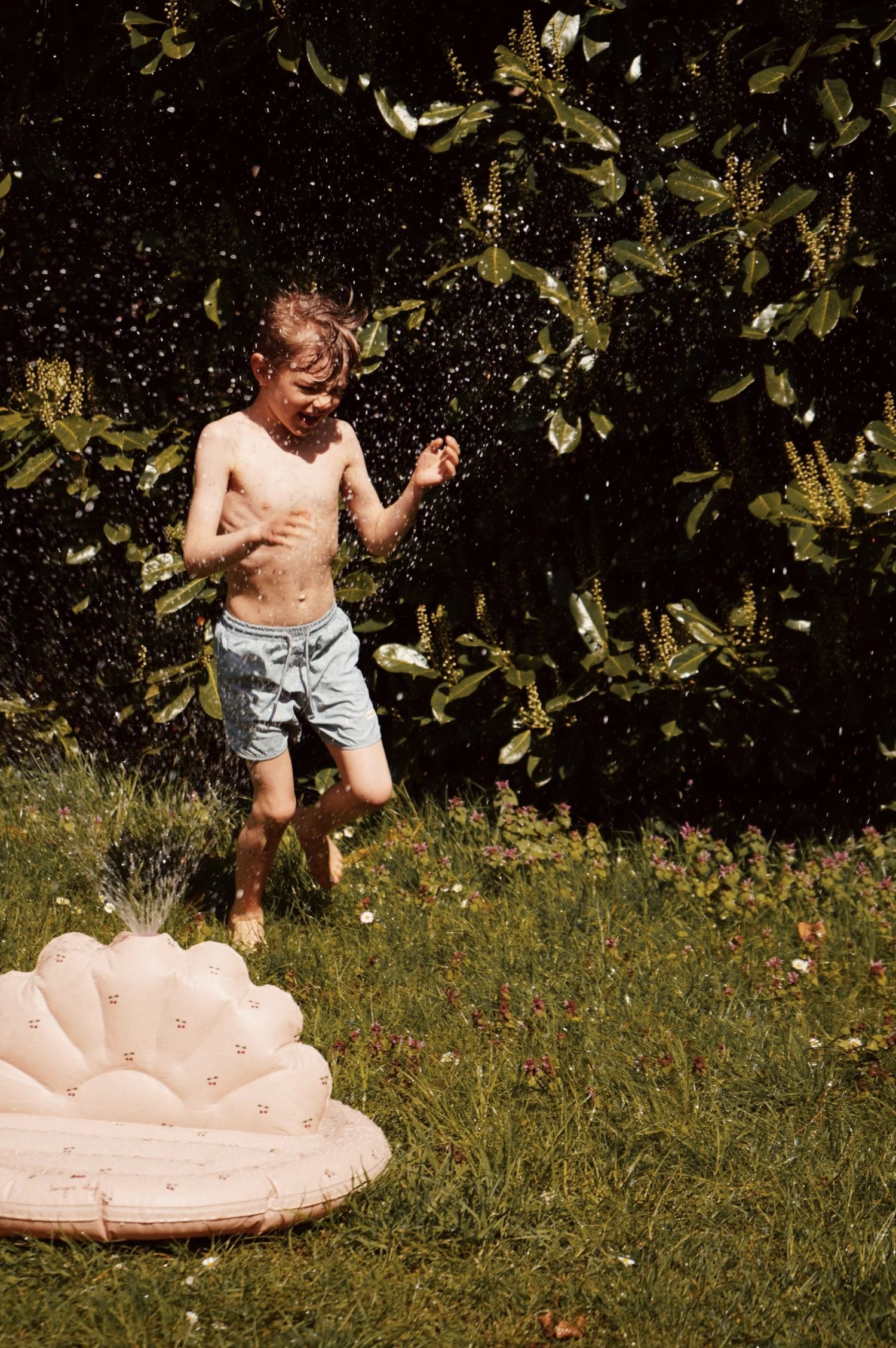 Fun inflatable shell sprinkler. Choose between three unique Konges Sløjd prints. Includes hose adaptor, which fits onto most EU domestic hoses.