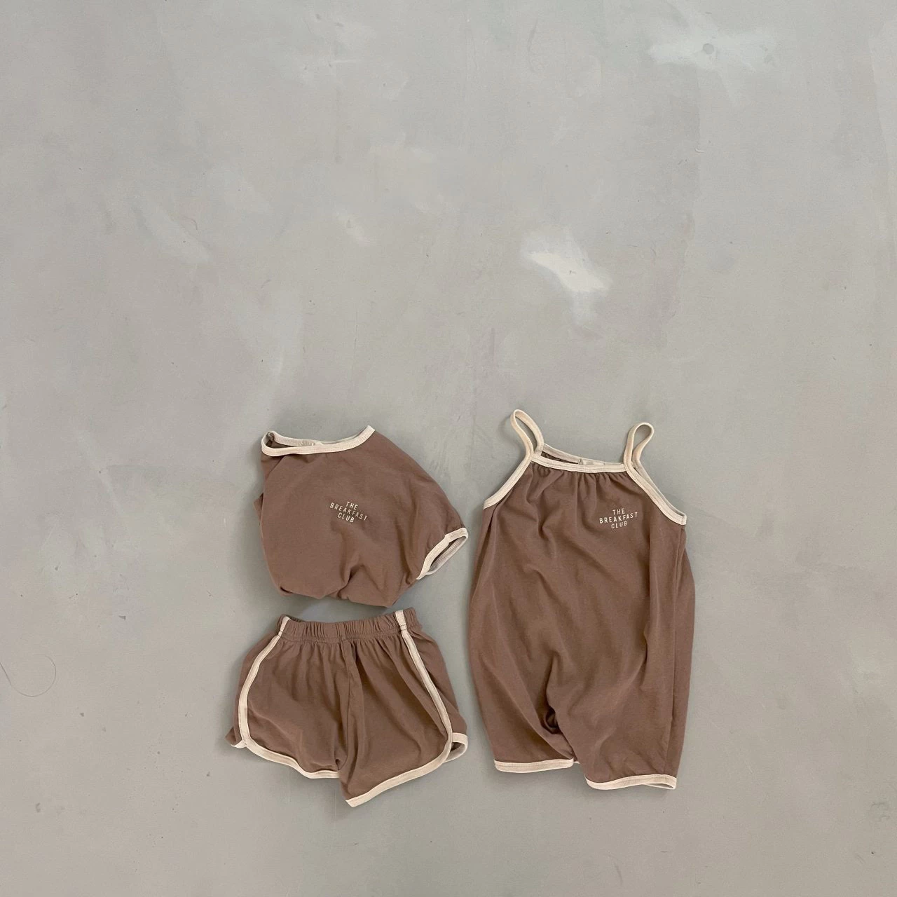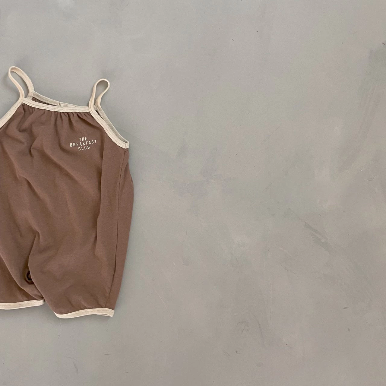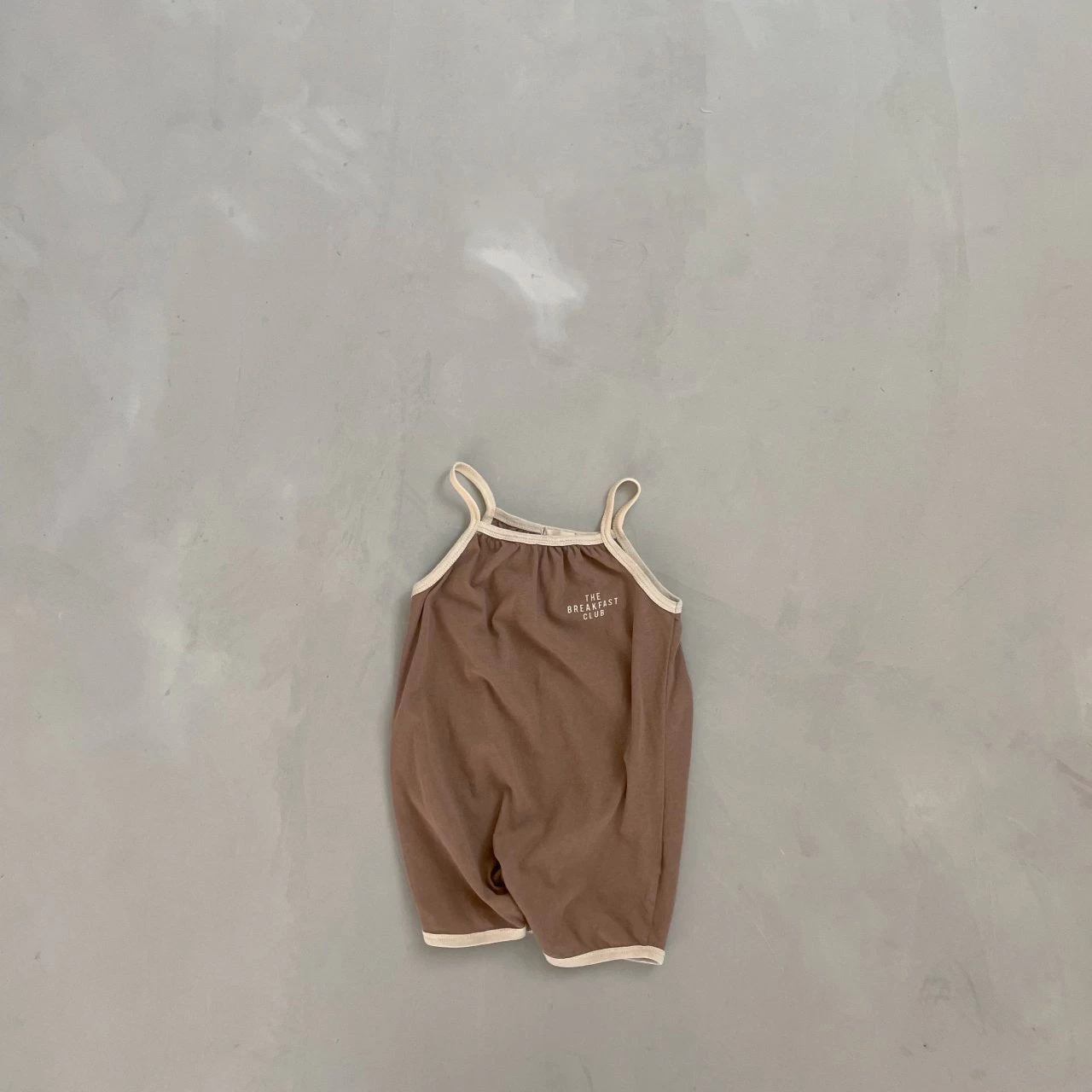 A sleeveless romper featuring snap closures for easy diaper changes.