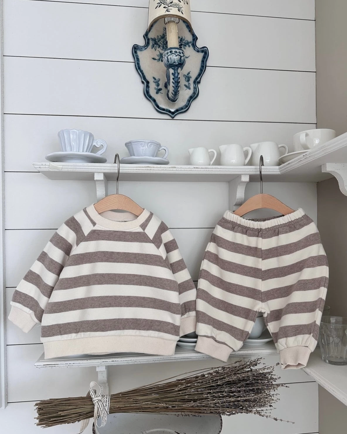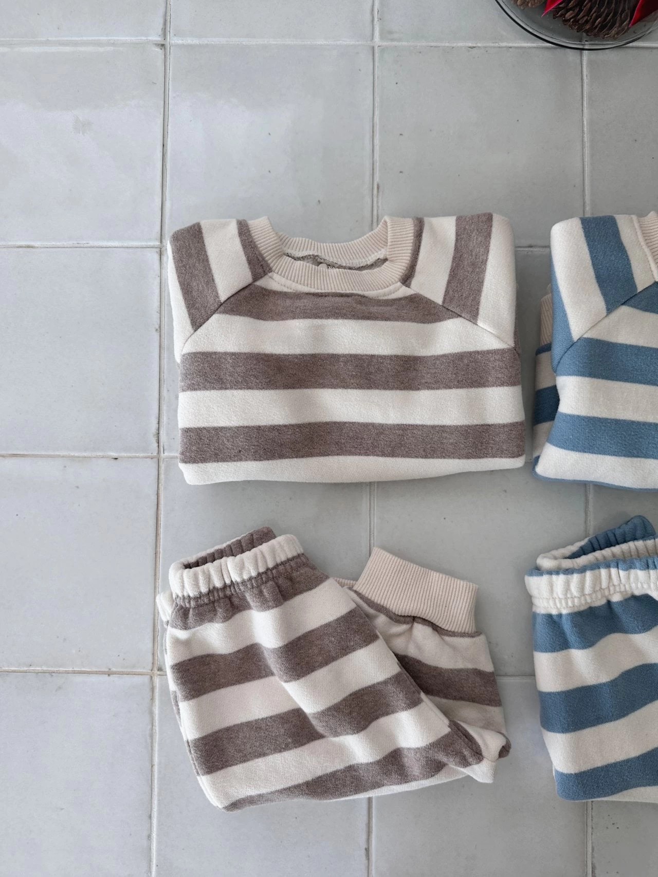 A perfectly oversized striped sweat set featuring brushed fleece on the inside for extra coziness this winter season.