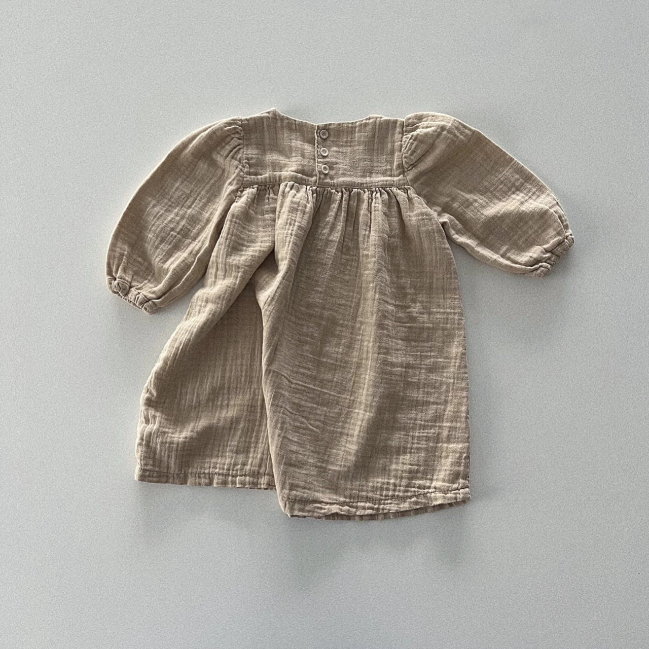 A long sleeve ‘yoryu’ crinkle dress featuring relaxed puff sleeves.Â